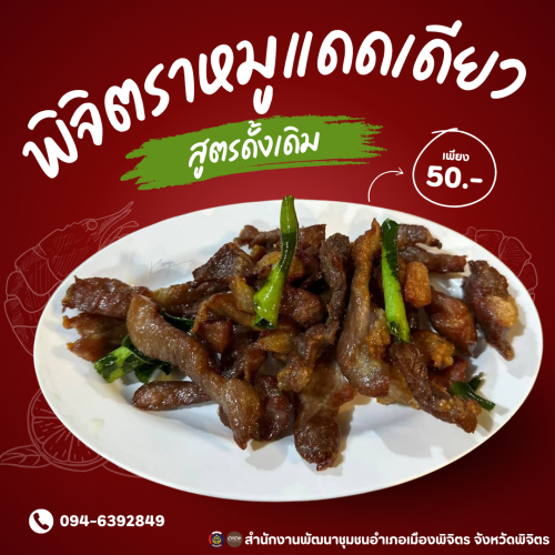กลุ่มพิจิตรา่หมูแดดเดียว หมู่ที่ 8 ตำบลคลองคะเชนทร์ อำเภอเมืองพิจิตร จังหวัดพิจิตร ผลิตภัณฑ์ : หมูแดดเดียว เบอร์โทร 094-6392849 ?